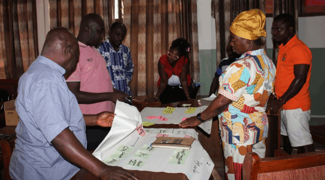Each workshop brought together about thirty participants representing both public and private institutions. Public sector participants included the Cocoa Health and Extension Division, the District Department of Agriculture, and researchers from the University of Ghana. On the private side, representatives came from farming groups, rural and community banks, licensed buying companies, traditional leadership, NGOs, and farmer cooperatives. Participation was diverse in terms of gender and age. Women dominated the Suhum sessions, while in both locations older participants, defined as those above thirty-five years, formed the majority.